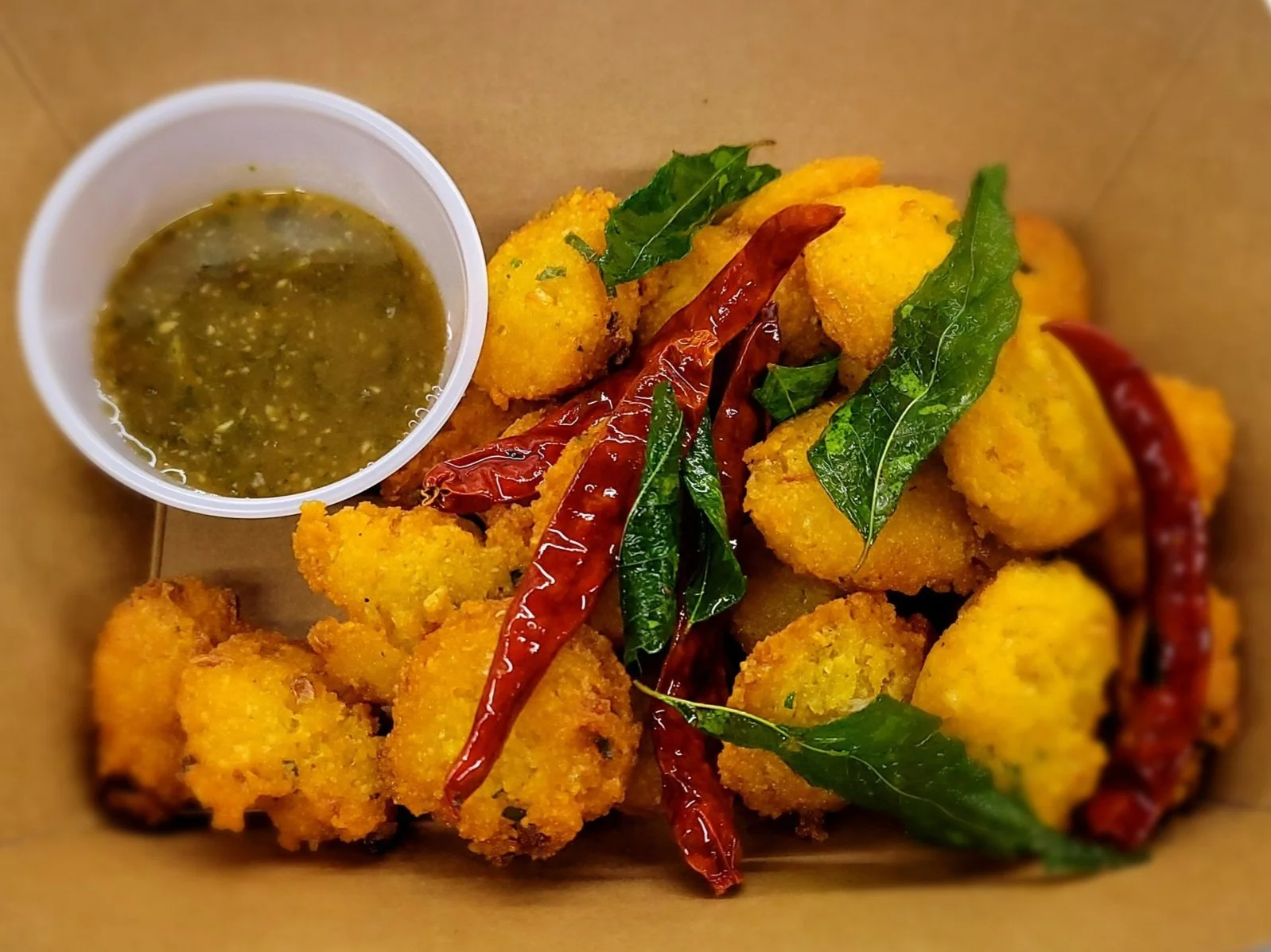 Pazun Nga Baung Kyaw ( Baby Shrimp Fritters) with special house sauce